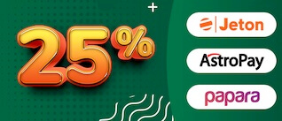 Pour cette nouvelle semaine remplie de matchs de football et de sport en tout genre, vous avez la possibilité d’obtenir jusqu’à 25% de bonus sur votre dépôt sur le site Betwinner. Le bonus betwinner vous offre l’opportunité d’obtenir 25% de bonus sur le montant de votre dépôt avec les systèmes de paiement AstroPay, Jeton et Papara. Ainsi, en réalisant un dépôt via les moyens de paiement cités ci-dessus, vous obtiendrez ainsi 25% de bonus supplémentaire à hauteur de 100€ maximum le dépôt.