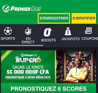 Lors de cette semaine de football, vous avez la possibilité d’obtenir jusqu’à 55,000,000 FCFA de bonus avec le bookmaker Premier Bet. Le code promo Premier Bet vous permet de pronostiquer sur 6 matchs proposés par le bookmaker afin de remporter le jackpot. Ainsi, en pronostiquant le score correct de chacun des 6 matchs de la promotion Super 6, vous serez alors éligible au gain des 55,000,000 FCFA.